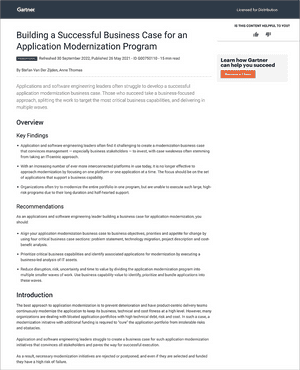 Gartner, Building a Successful Business Case for an Application Modernization Program, Stefan Van Der Zijden, Anne Thomas, 30 September 2022.